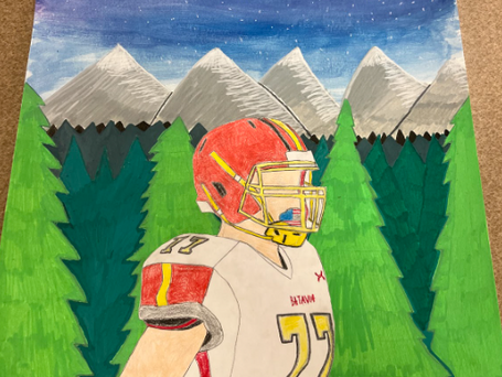 Students create a collage out of magazines. They then recreate those collages on canvas with acyrlic paint. These always turn out great!